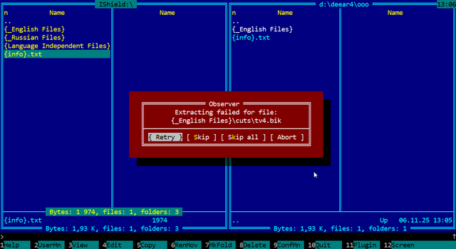 https://wdfiles.ru/1uscw другие сборки версии 5.50.137.0 без проблем... Far+Observer его открыл, но пишет ошибку ![]() ZipScan открыл, извлёк, но он не учитывает языковые файлы и просто их заменяет... Удалось распаковать группами через I5comp.exe ![]() неудобно, но результат есть. Такой проблемный cab первый раз встречаю... Надо добавить в руководство данный метод. -------------------- |__--__|