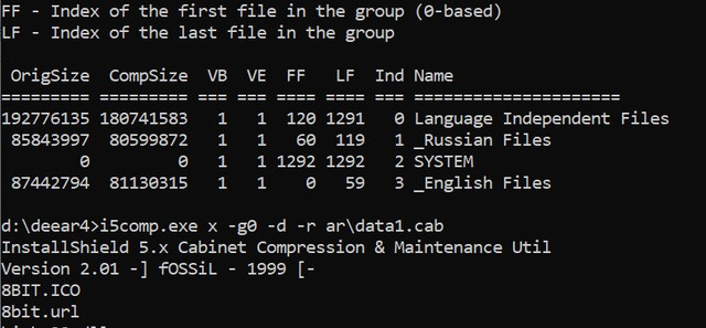 Всё распаковал (разве что выяснилось, что чистый (консольный) 7za.exe не умеет распаковывать - надо было именно GUI версию брать). Однако: 1) Запускаю выложенный тобой IsCabView.exe 2) File -> Open, выбираю data1.hdr 3) В панели-дереве слева: Components -> data -> Files 4) В правой панели выбираю любой файл - data0001.dat или data0002.dat 5) Tools -> Extract File 6) Жму "Сохранить" и программа падает с фатальной ошибкой (два окна с руганью подряд) Для работы IsCabView.exe нужно что-то ещё? Второй файл уже не нужен - на форуме Extractor.ru его выложили, но мне хотелось бы до конца с IS разобраться, чтобы в будущем не париться... |